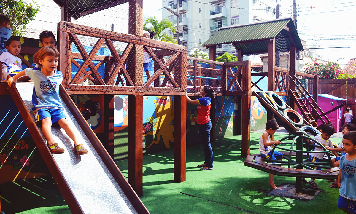 Nosso parque conta com brinquedos que oferecem diversão, segurança e estímulo a interação entre as crianças.